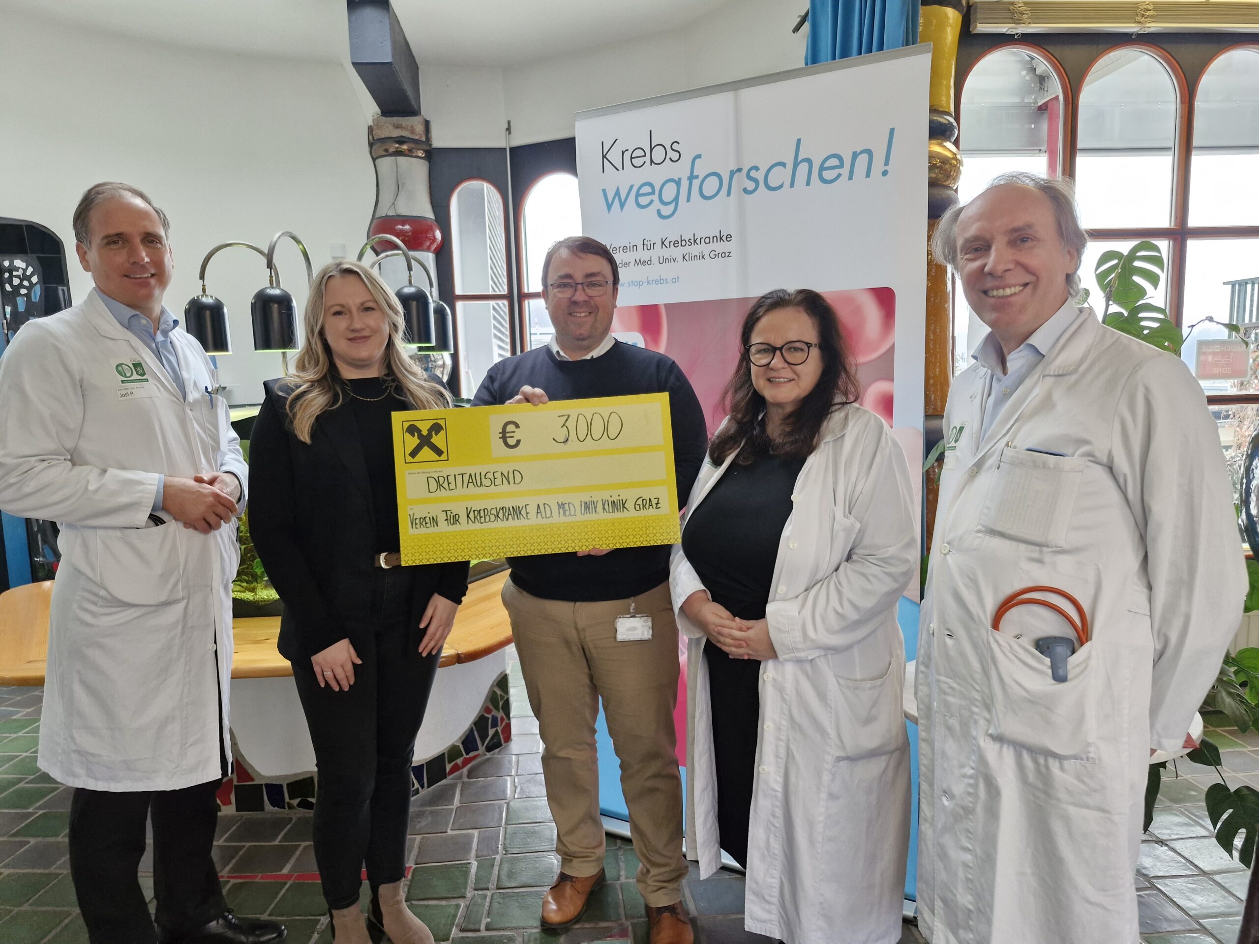 Unser Verein bedankt sich von Herzen für diesen wertvollen Beitrag. Durch diese Spende können erneut wichtige Forschungsprojekte sowie die Patientenbetreuung an der Klinischen Abteilung für Onkologie unterstützt werden.